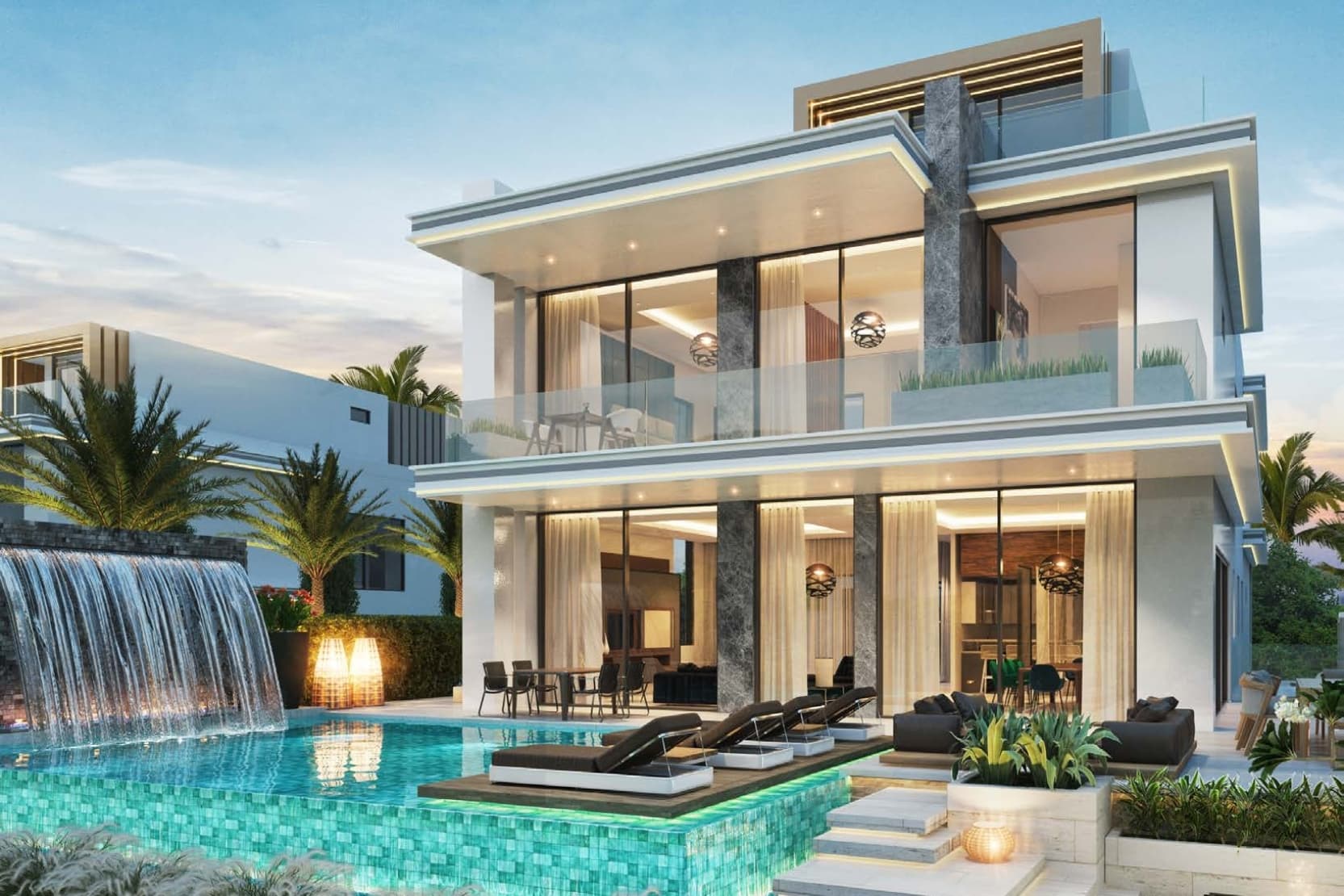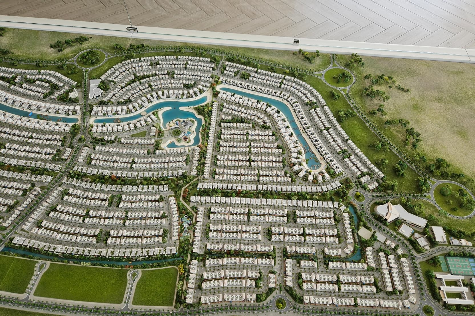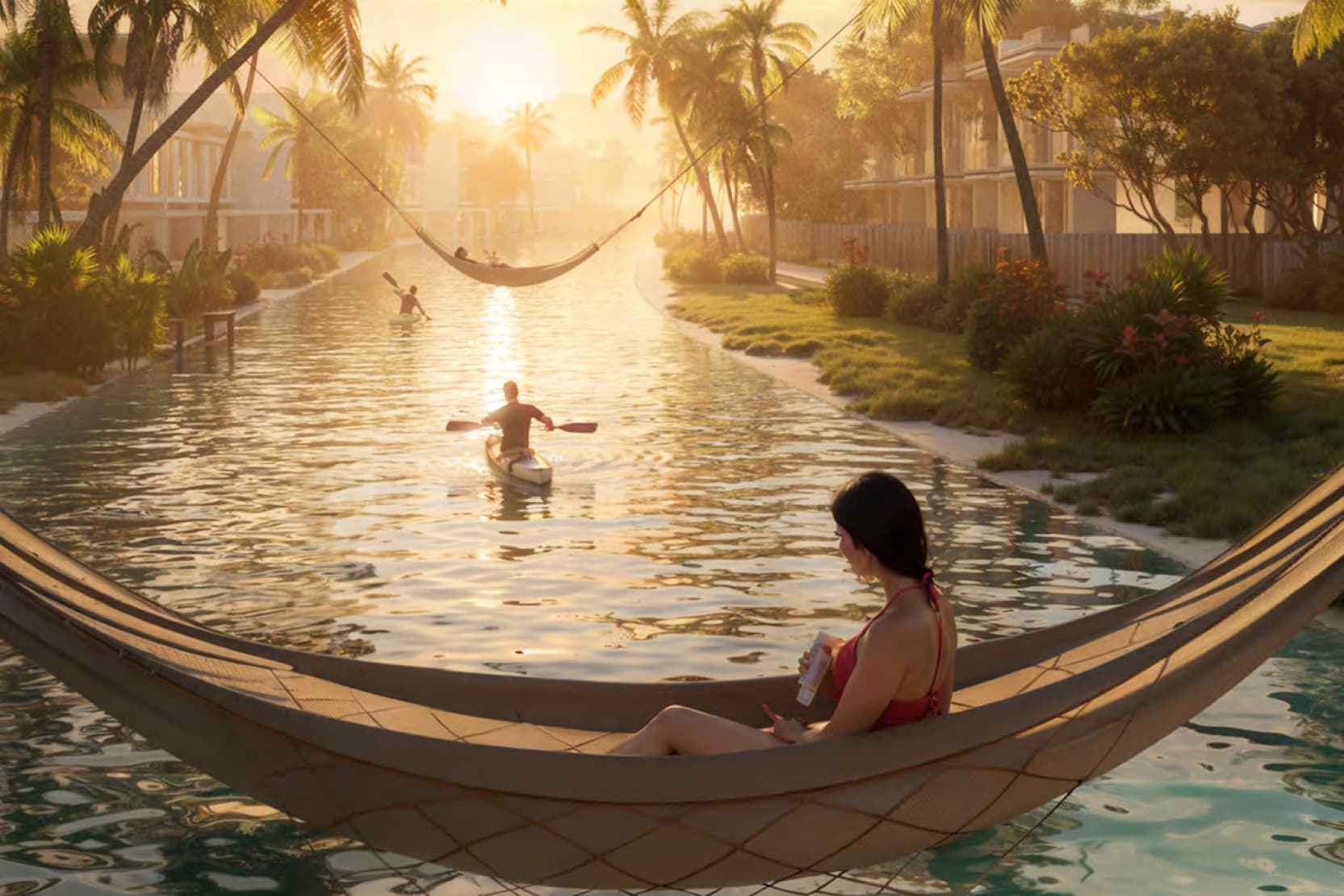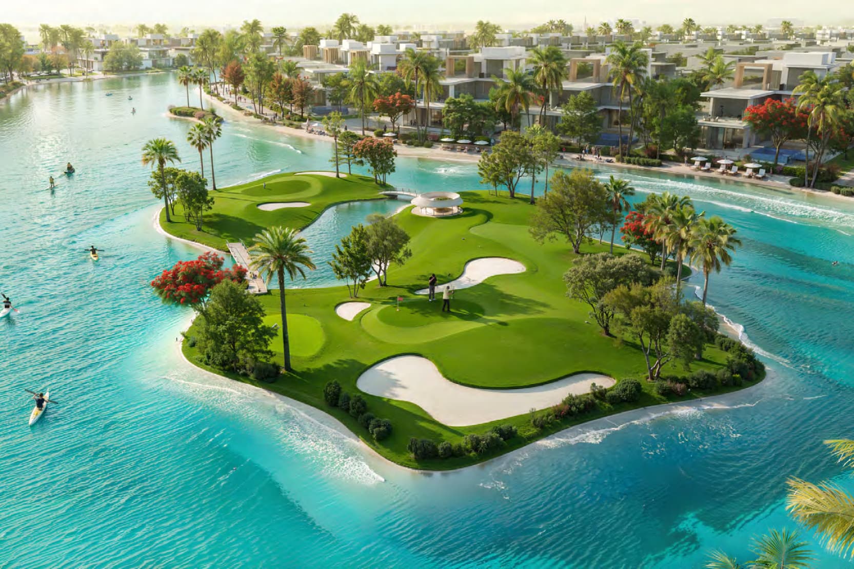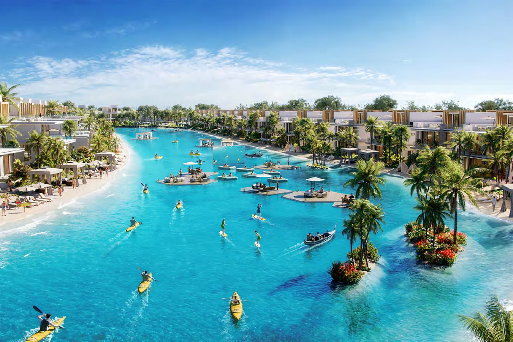 DAMAC Islands is a sprawling master community in DubaiLand featuring 14,896 townhouses and villas (4 to 7 bedrooms) with tropical island-inspired living, waterways, and resort-style amenities.