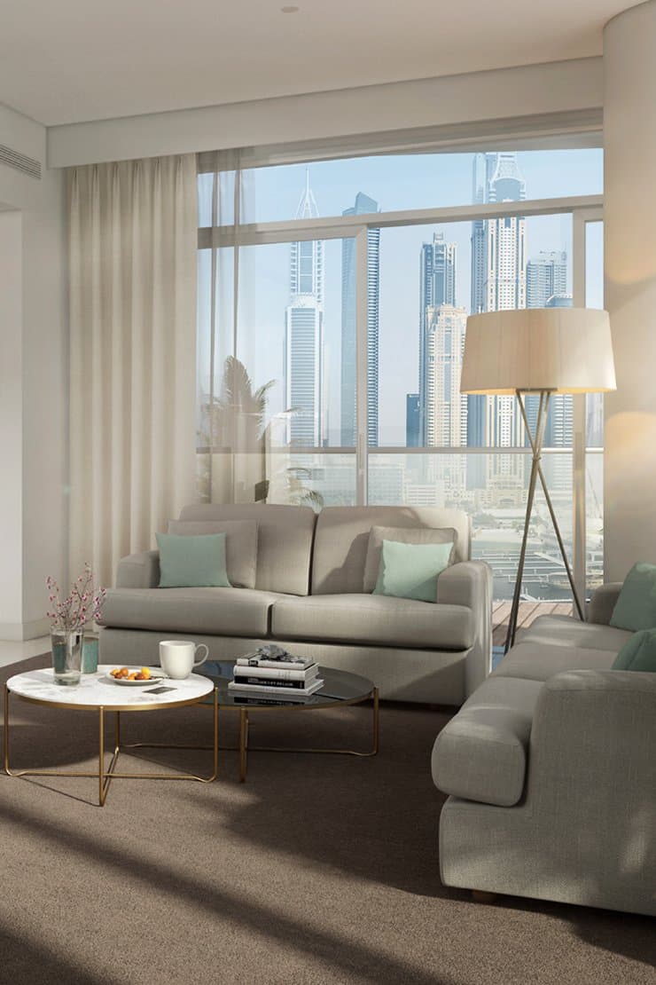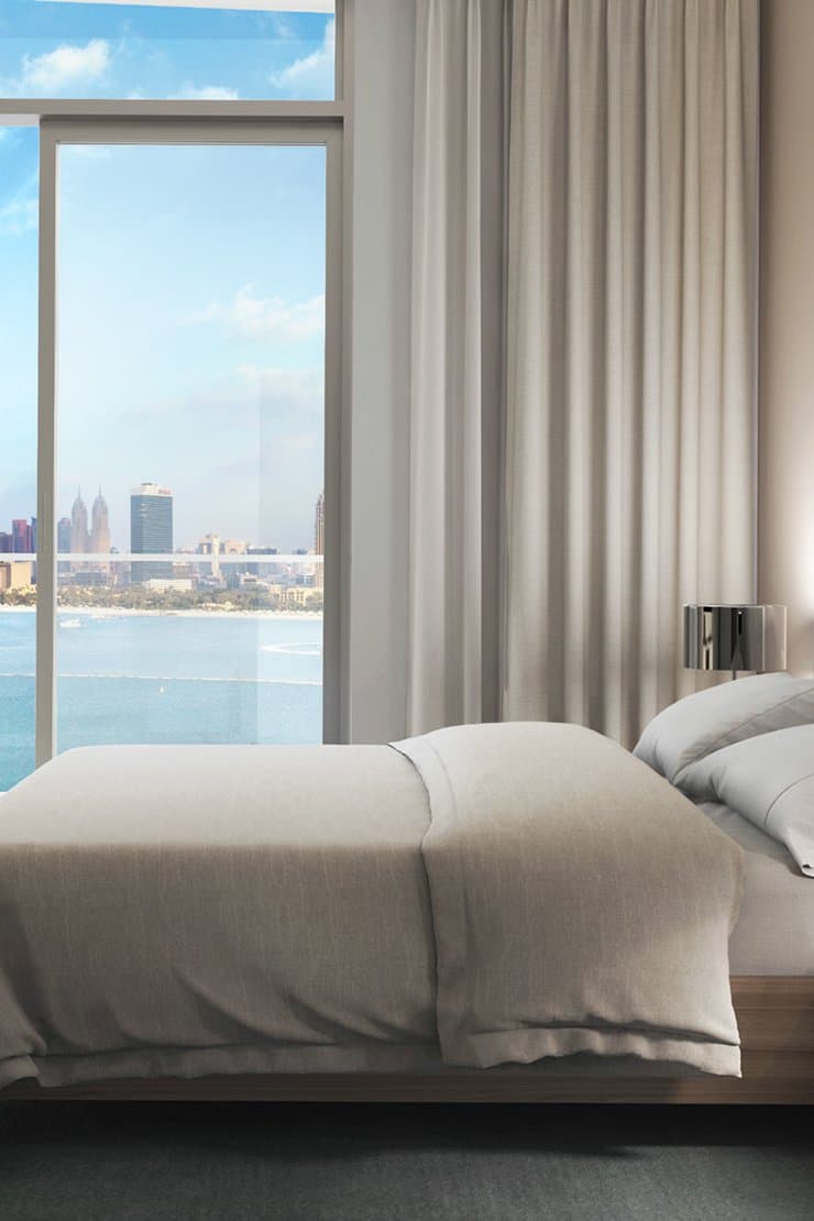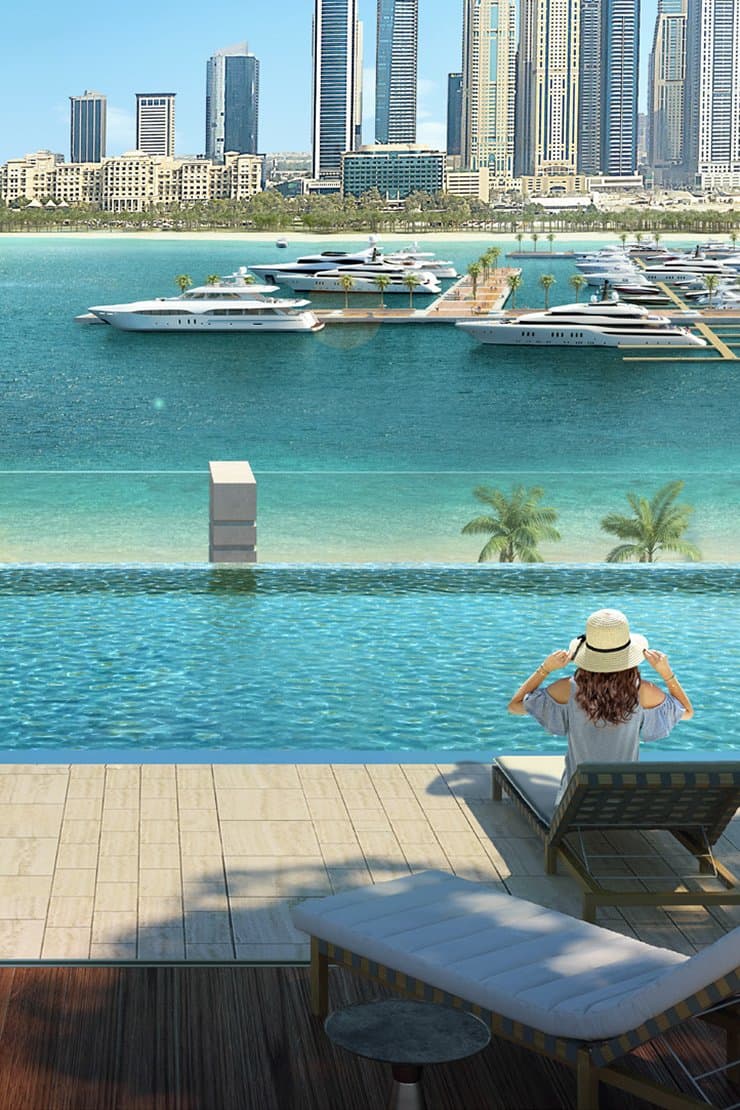 Marina Vista at Emaar Beachfront offers panoramic views of the Arabian Gulf and Dubai Marina skyline with private beach access.