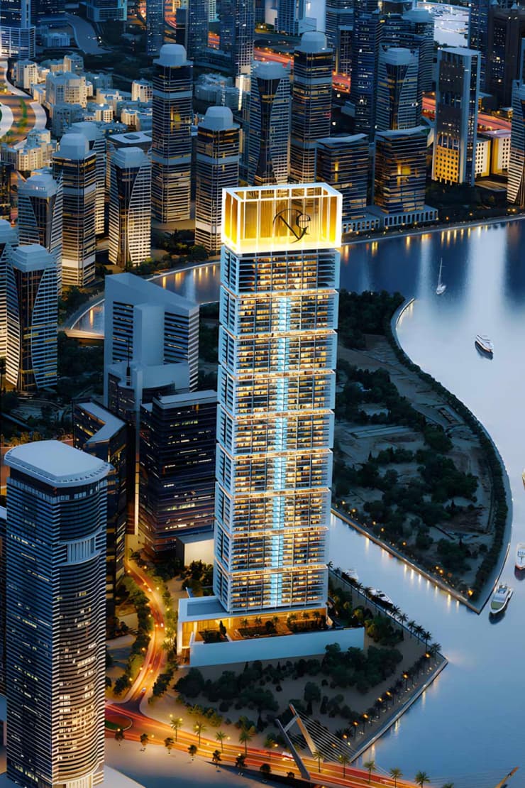 One by Binghatti is a 67-storey residential tower in Business Bay offering studios, 1 and 2-bedroom apartments with Binghatti's signature geometric facades.
