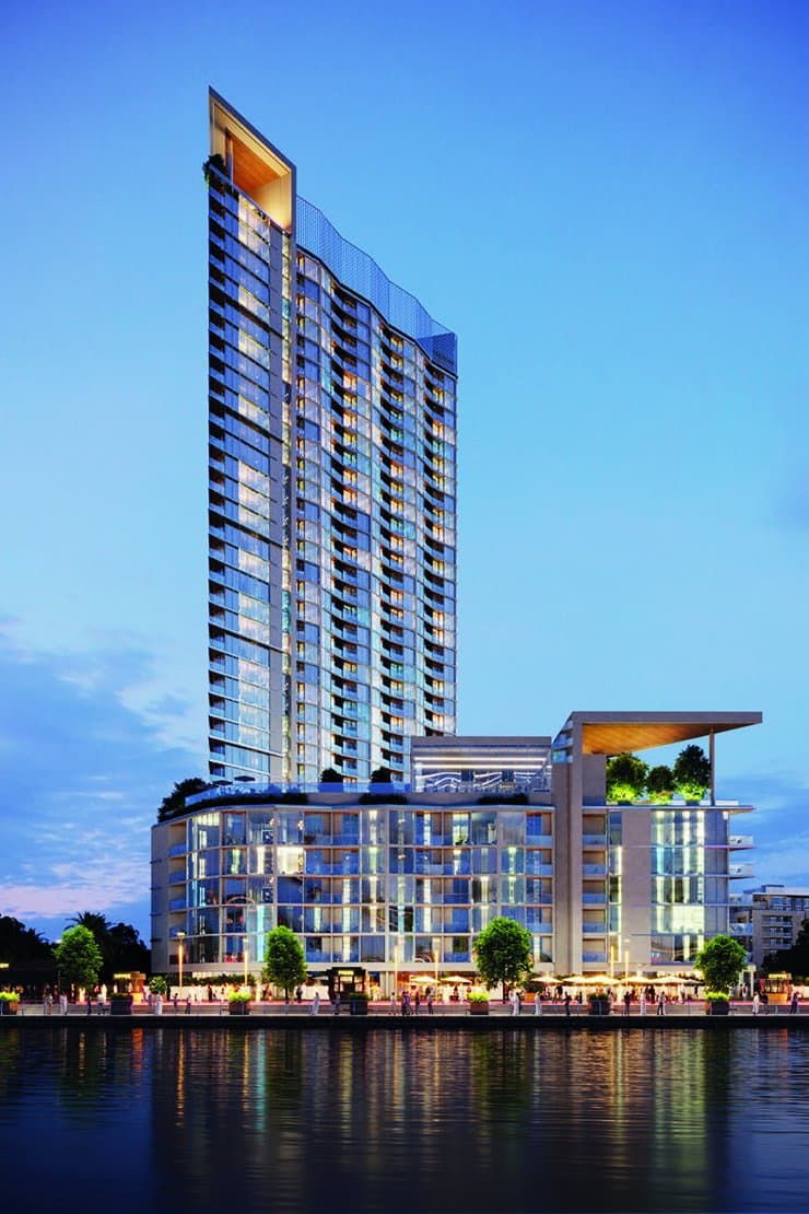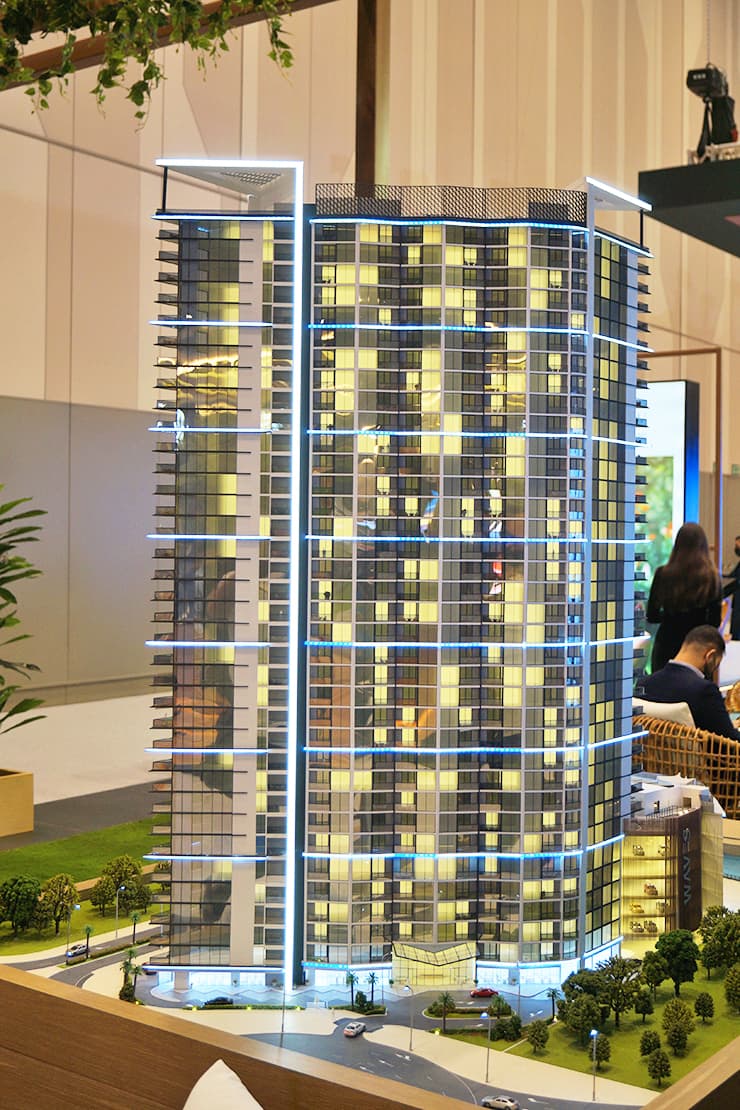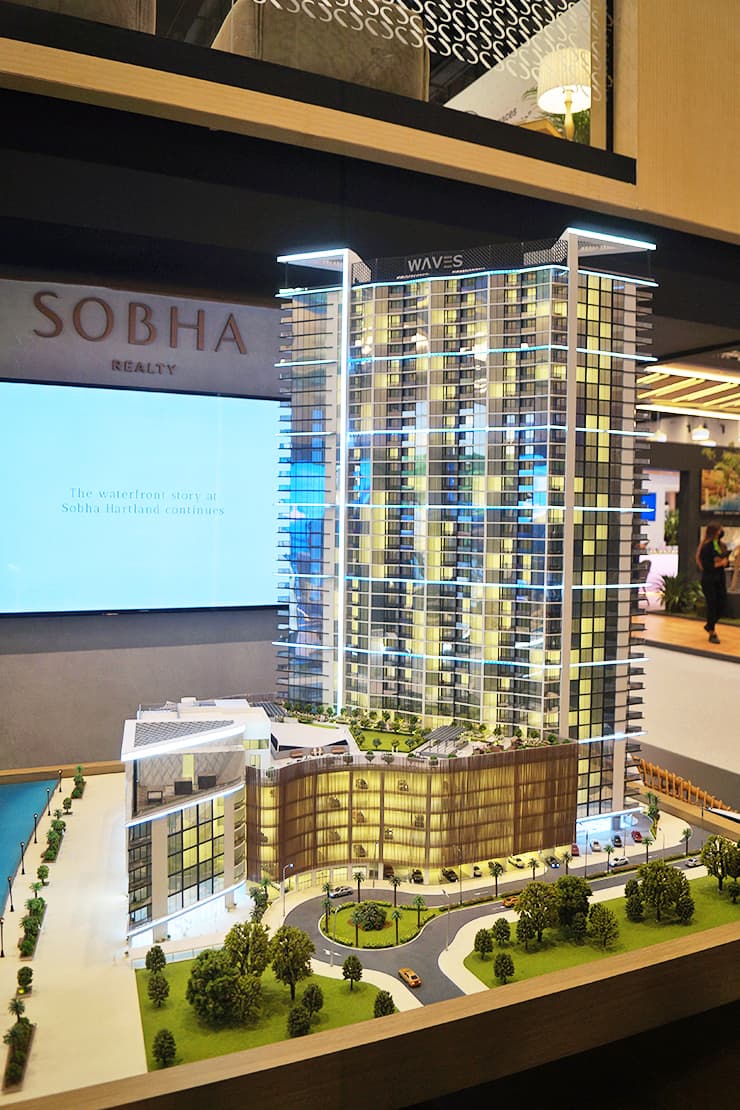 Waves at Sobha Hartland II features flowing architectural lines and waterfront apartments with lagoon views in MBR City.