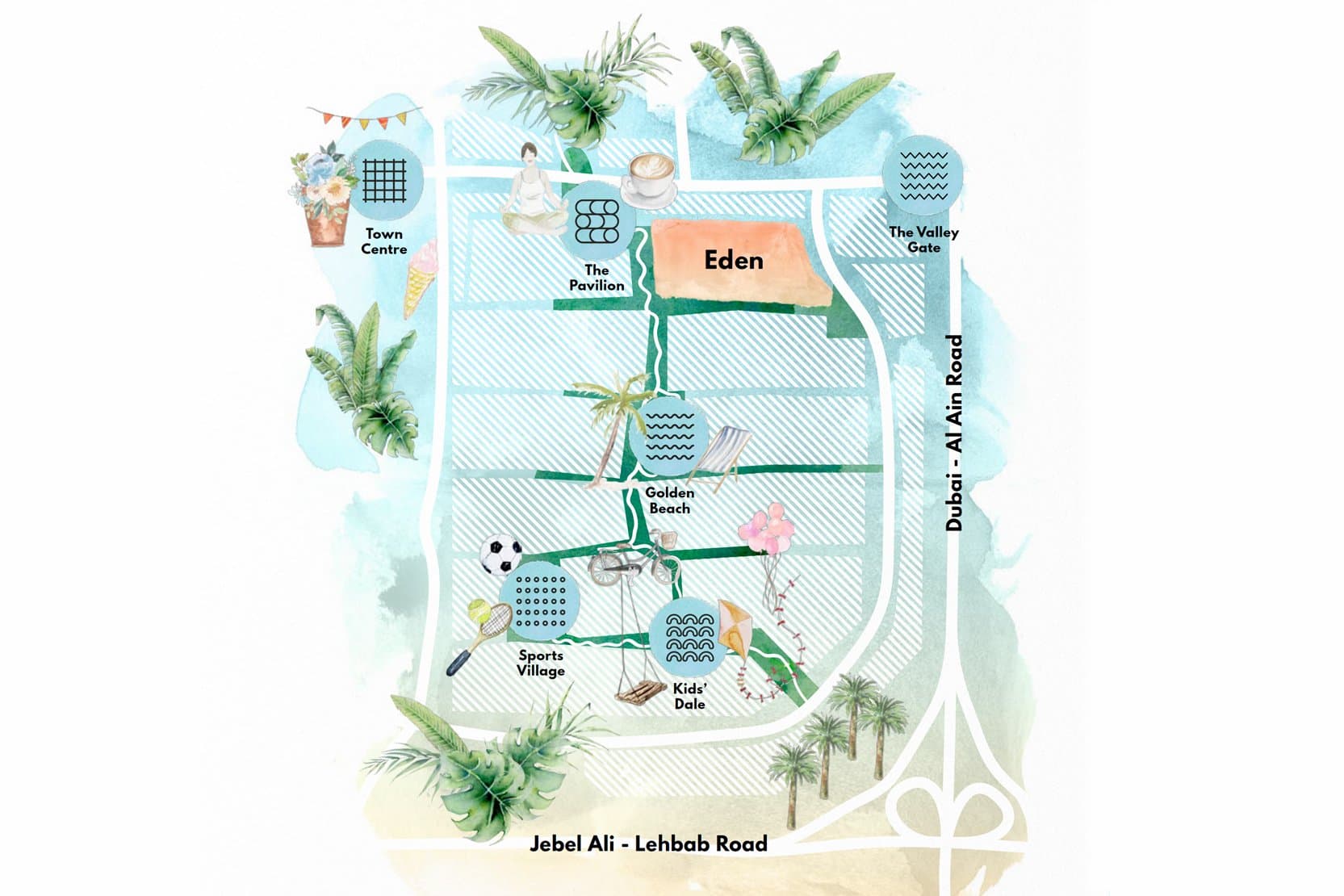 Emaar's The Valley – Eden offers spacious 4-bedroom townhouses surrounded by lush green spaces, sports facilities, and a vibrant town center.